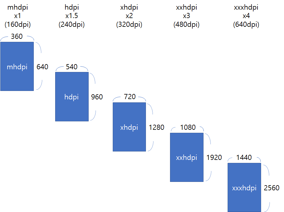 * 디바이스는 이미지를 가져다 사용할때 폴더가 큰 xxxhdpi 사이즈부터 -> 작은 사이즈 mdhpi 순서로 폴더를 찾아간다.