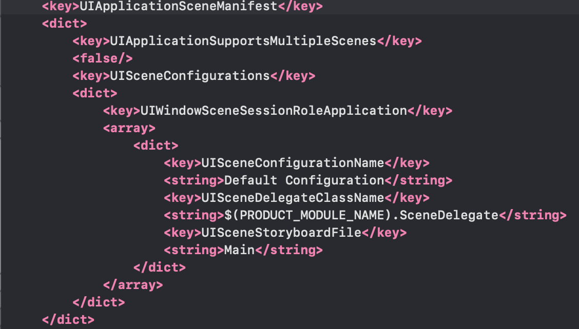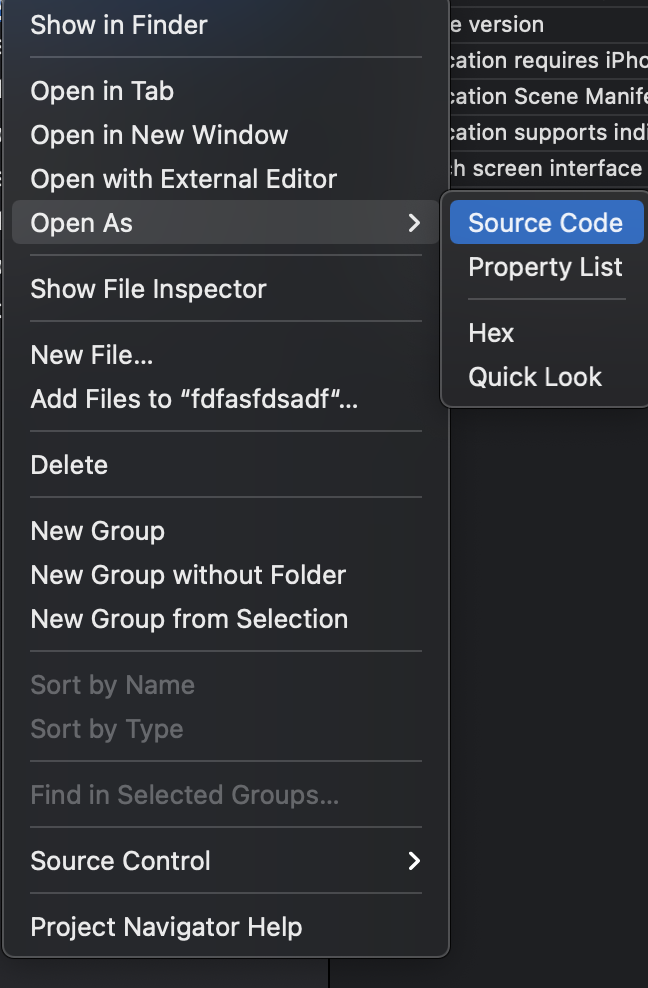 4. 프로젝트 > Info.plist 에서 source code 를 열고,