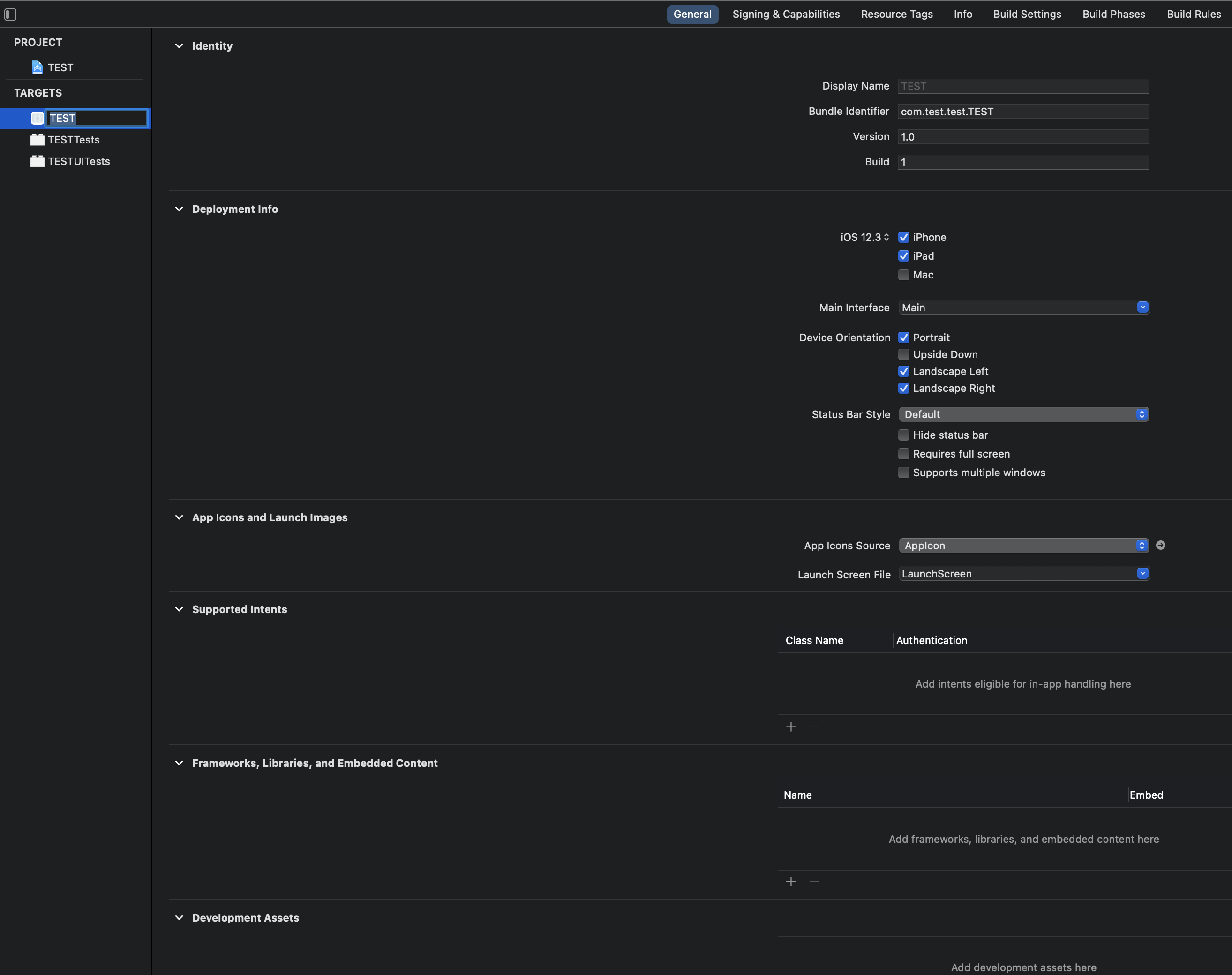 Deployment Info 에서 iOS 12.4보다 아래인 12.3을 선택해준다.