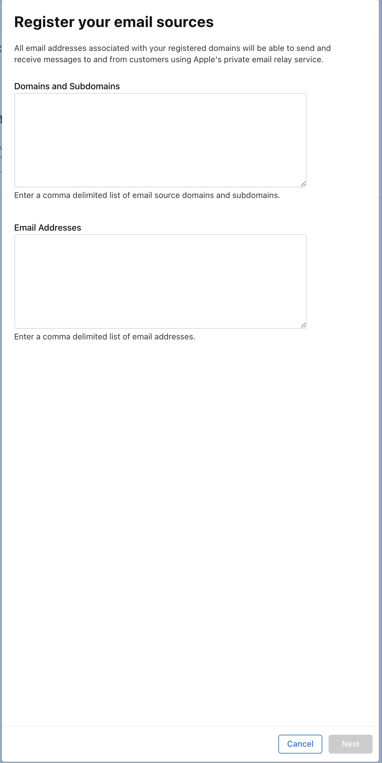 (! 이때 domain 은 apple 에서 인증된 SPF가 등록된 도메인 이어야함( 해당 부분은 인프라팀 및 사내보안 서버기기를 담당하시는 분에게 의뢰 해보아야함 또는 외부 업체에서 인증메일을 관리한다면 해당 업체에 문의)